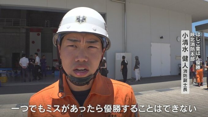 はしご登はん優勝 峡北消防本部 小清水健人消防副士長: