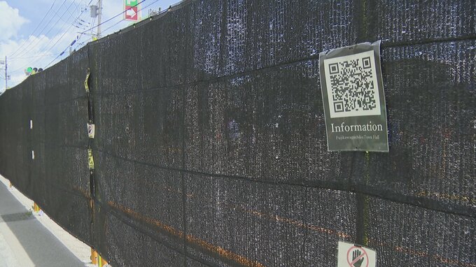 黒い幕に張りつけたQRコードは、スマートフォンなどで読み取ると4か国語で観光で訪れたことへの感謝と幕を設置した理由を載せた町のホームページが表示されます。
