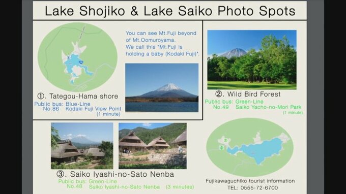 また大石公園や西湖野鳥の森公園など町内オススメの写真撮影スポットなど10か所が紹介されています。