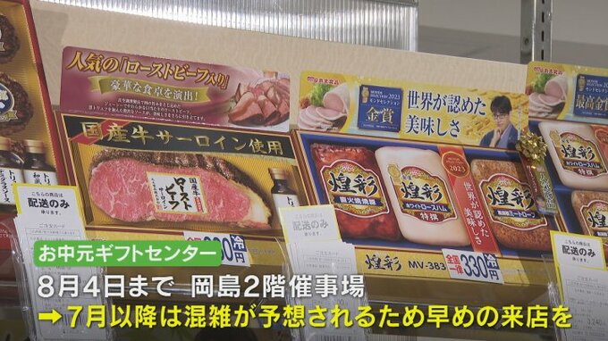 岡島のお中元ギフトセンターは8月4日まで開設していますが、7月以降は混雑が予想されるため岡島は早めの来店を呼び掛けています。