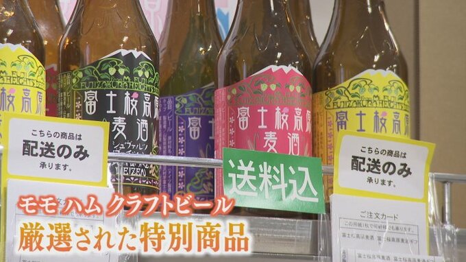 県産ギフトのコーナーにはこれから旬を迎えるモモをはじめ、職人手作りのハムや薫り高いクラフトビールなど、選び抜かれた特別な商品がずらりと並んでいます。