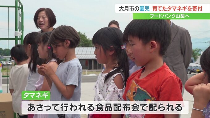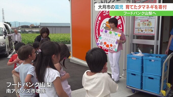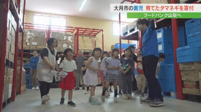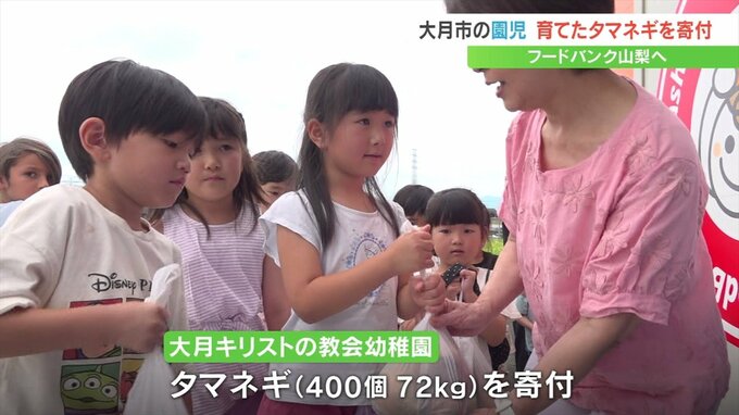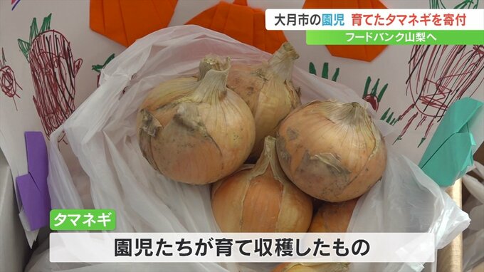 山梨県大月市の幼稚園児が、自分たちで育てたタマネギをフードバンク山梨に寄付しました。
