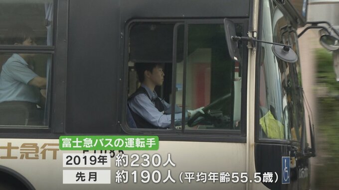 富士急バスの運転手は2019年に230人いましたが、5月時点では約190人と減少し、平均年齢は55.5歳となっています。