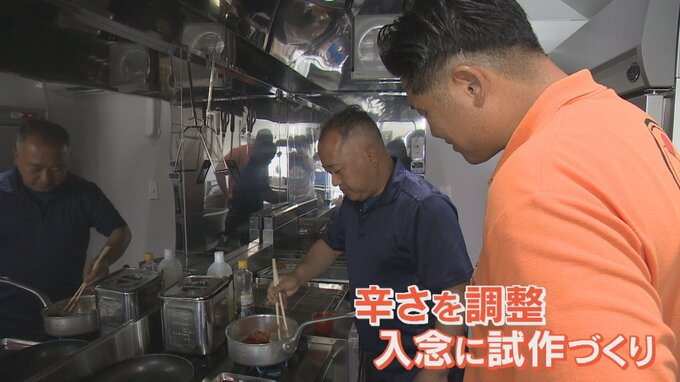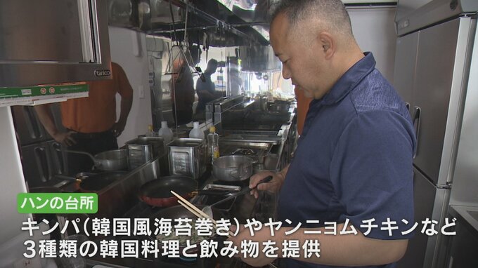 この店は韓国風海苔巻きの「キンパ」やヤンニョムチキンなど3種類の韓国料理と飲み物を提供する予定で、17日は子どもでも食べやすいよう辛さを調整するなど入念に試作品づくりを進めていました。