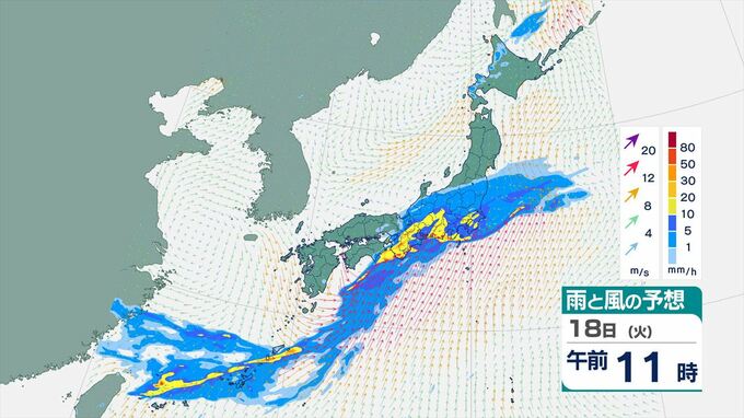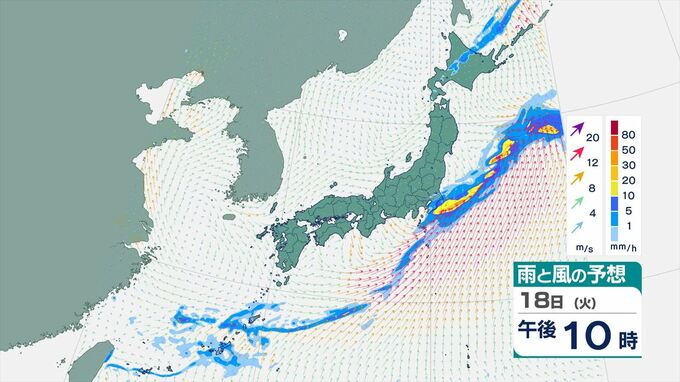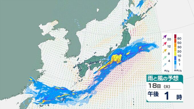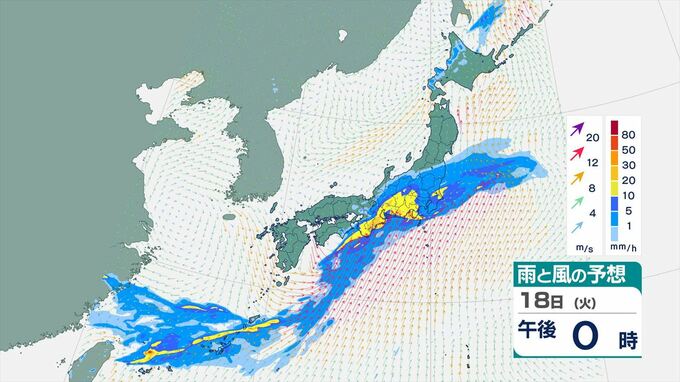 【大雨情報】関東甲信地方 18日夜遅くにかけて大雨のおそれ 警報級の可能性も 雨・風シミュレーション