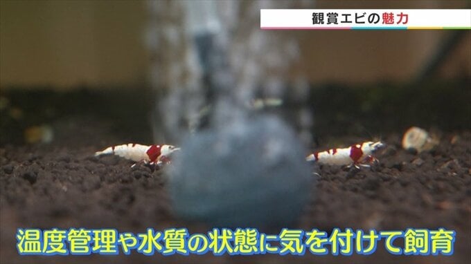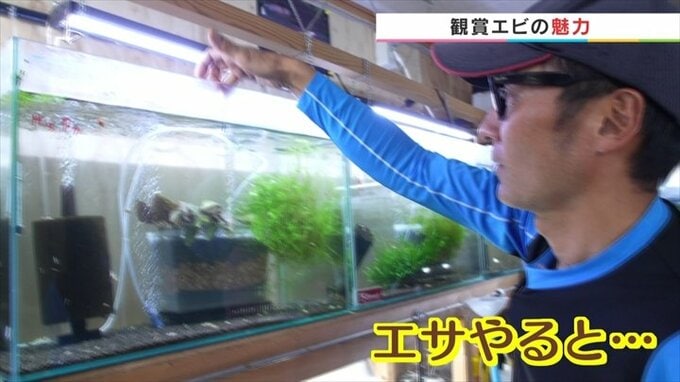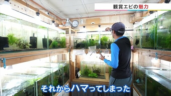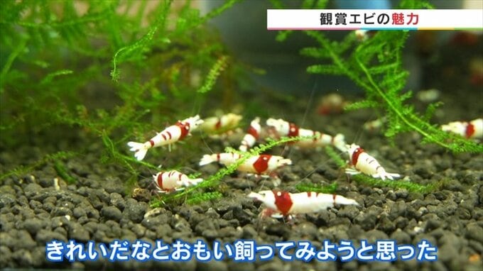 KYA農園 山土井英雄さん:熱帯魚の店に行って、たまたまそこにこの赤白のエビがいたんでそこでちょっと綺麗だなと思って、その時にちょっと飼ってみようかなって。
