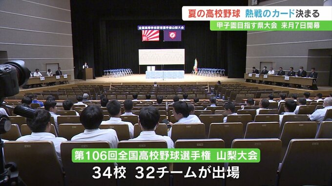 7月7日に開幕する夏の全国高校野球山梨大会の組み合わせ抽選会が行われ、甲子園を目指す熱戦のカードが決まりました。