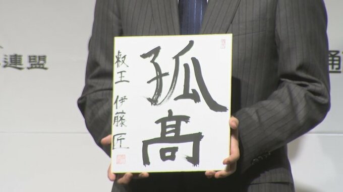 一夜明け、対局会場となった甲府市のホテルで会見し、信念をもってブレずに高みを目指すという意味を込め、「孤高」と書かれた色紙を披露しました。