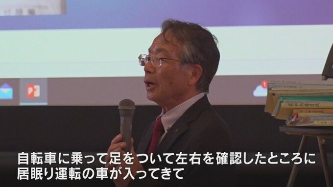 「自転車に乗って、足をついて左右を確認したところに居眠り運転の車が入ってきて、5mくらい飛びました。即死だったそうです」
