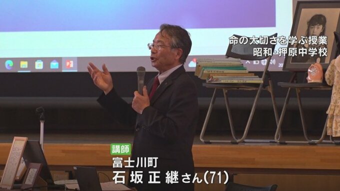 また会場には美穂さんが使っていたランドセルや上履きなどが展示され、生徒たちは命の尊さをかみしめていました。