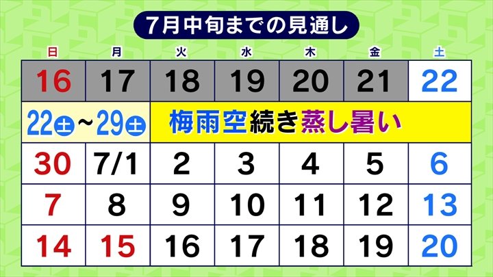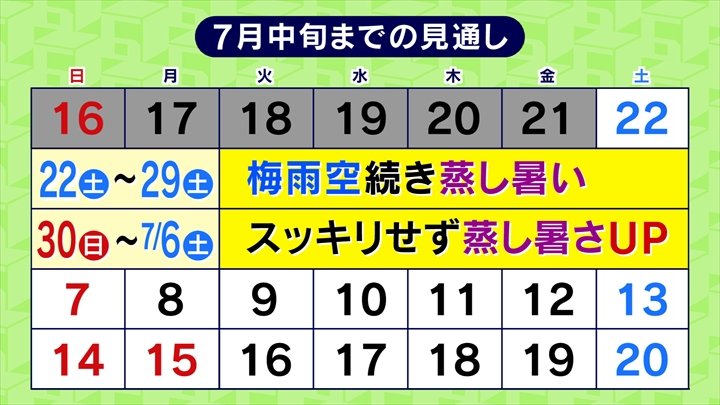 さらに、7月7日から20日にかけては曇りや雨の日が多くなります。