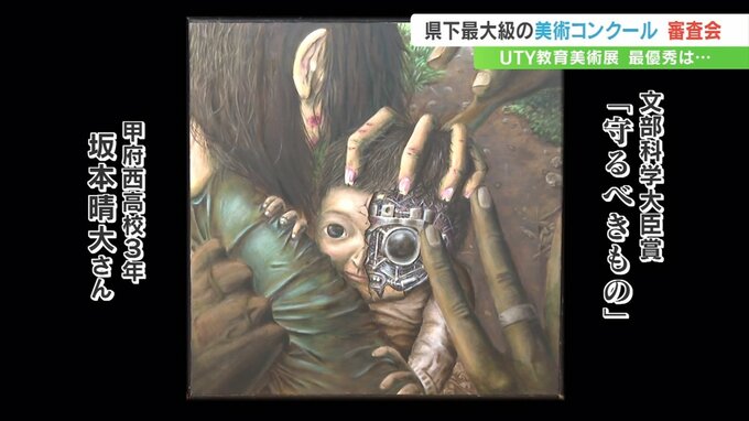 最優秀となる文部科学大臣賞に輝いたのは甲府西高校3年坂本晴大さんの「守るべきもの」。