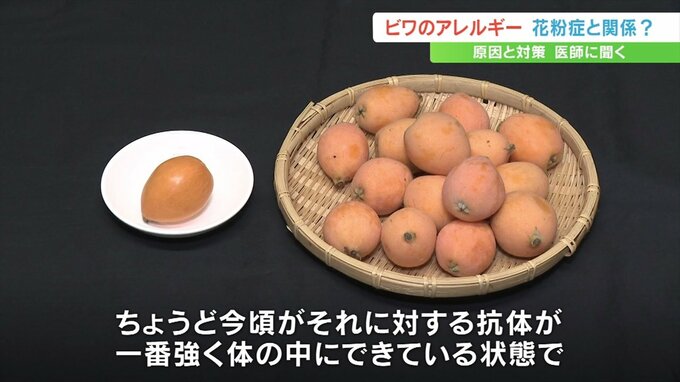 「(花粉の)飛散時期が1月から5月です。ちょうど今頃がそれに対する抗体が一番強く体の中にできている状態で、旬の時期のビワが6月に食べられることが多いので、症状が強くなると従来よく言われている」