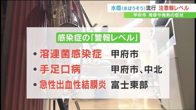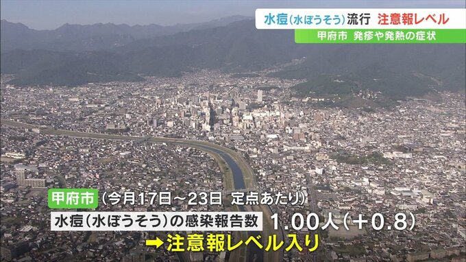 甲府市は水痘、いわゆる水ぼうそうの流行が注意報レベルに入ったと発表しました。