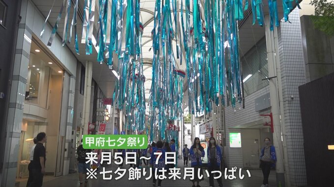 甲府七夕祭りは7月5日から7日まで開催され、七夕飾りは7月いっぱい飾られます。