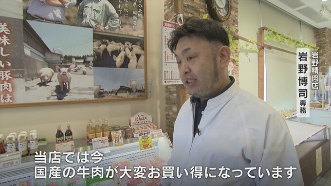 「当店では今、国産の牛肉が大変お買い得になっています」