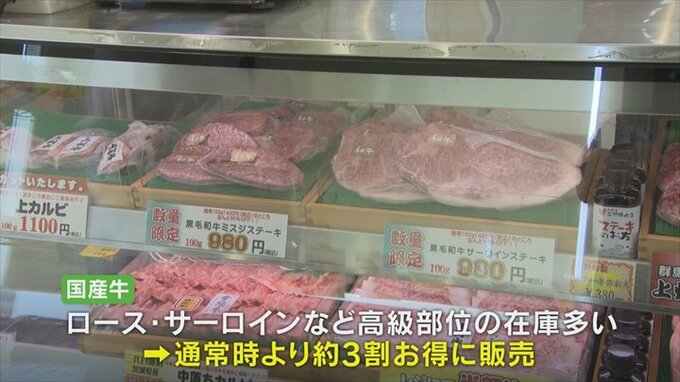ロースやサーロインなどの贈り物に人気の高級部位の在庫に余裕があるため、通常時より平均で3割ほどお得に販売しているということです。
