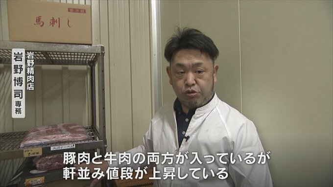 「豚肉と牛肉の両方が入っているが軒並み値段が上昇している」