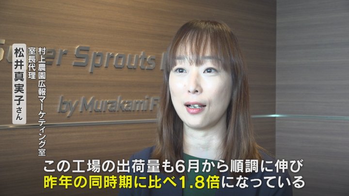 村上農園は6月から工場をフル稼働させ、発芽3日目のブロッコリーの新芽ブロッコリースーパースプラウトを1日最大10万パック生産し東日本に出荷しています。