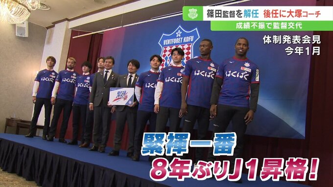 緊褌一番をスローガンに、就任2年目の篠田善之監督のもと8年ぶりのJ1昇格を目指すヴァンフォーレ甲府。