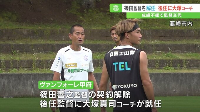 ヴァンフォーレ甲府が成績不振のためシーズンの途中で篠田善之監督を解任し、後任の監督に大塚真司コーチが就任すると発表しました。