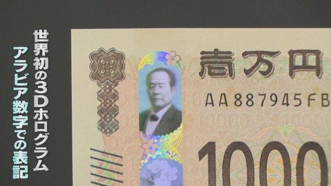 渋沢栄一、津田梅子、北里柴三郎が描かれた新紙幣は偽造防止のため、世界初の3Dホログラムが採用されているほか、金額はアラビア数字での表記になっています。