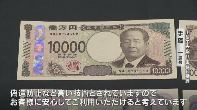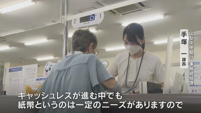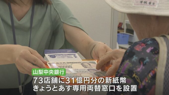 山梨中央銀行では73店舗に合わせて31億円分の新紙幣が届けられていて4日と5日、専用の両替窓口を設けて対応しています。
