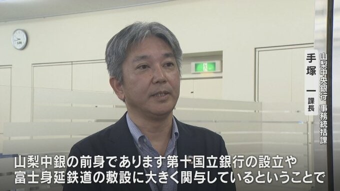 「山梨中銀の前身であります第十国立銀行の設立や、富士身延鉄道の敷設に大きく関与しているということで、銀行としても喜ばしく思っています」
