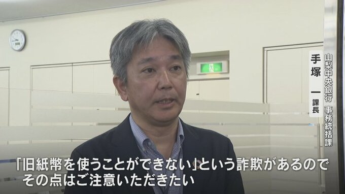 「旧紙幣につきましてもご利用いただけます。『旧紙幣を使うことができない』という詐欺があるので、その点はご注意いただきたい」
