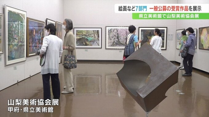 絵画や彫刻など一般公募から選ばれた作品を展示した美術展が、山梨県立美術館で開かれています。