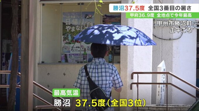 4日の山梨県内は勝沼で37.5度と全国で3番目の暑さとなったほか、甲府で36.9度と今年初めて猛暑日となるなど、観測10地点すべてで今年一番の暑さとなりました。