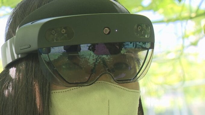 眼鏡型のディスプレイ=スマートグラスを使った栽培支援システムで、山梨大学などが開発に取り組んでいます。