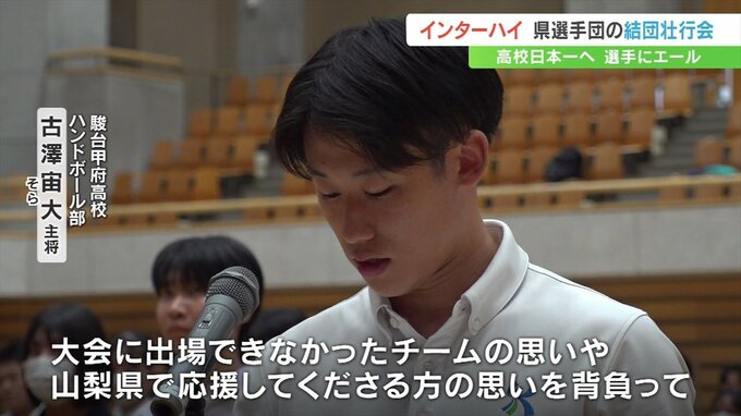 九州で開催されるインターハイ=全国高校総体に出場する山梨県選手団の結団壮行会が甲府市で開かれました。