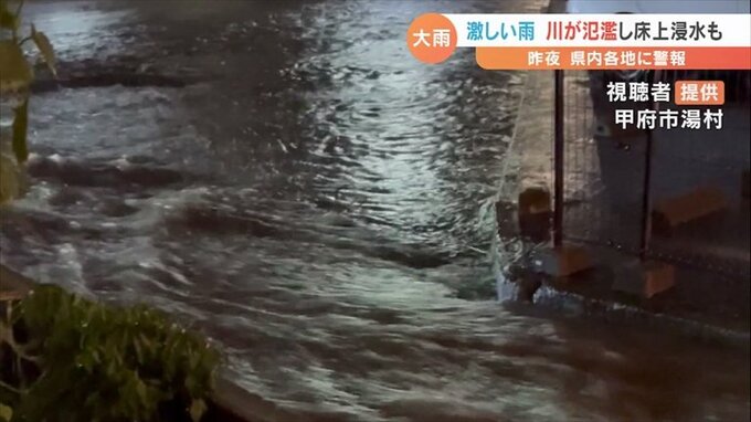 その後、午後9時23分に甲府市に大雨洪水警報が出されましたが、あふれた水は近くの飲食店に侵入し床上浸水となりました。