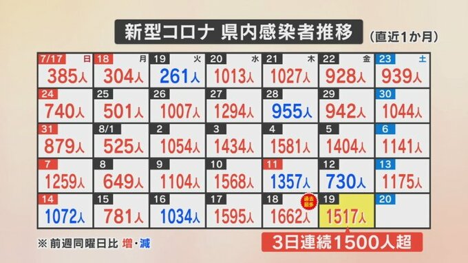 新型コロナ 1517人感染 山梨県は3日連続で1500人超 甲府刑務所は職員を含めた今月の感染者が69人に 2022年8月19日(金) 18:35 国内 新型コロナウイルスについて山梨県内では19日、新たに1517人の感染が発表されました。3日連続で1500人を超えました。過去最多だった18日の1662人より減りましたが、3日連続で1500人を超えました。また入院患者は22…