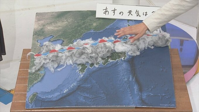 明日のポイントは雲が主役で蒸し暑くなりそうです。