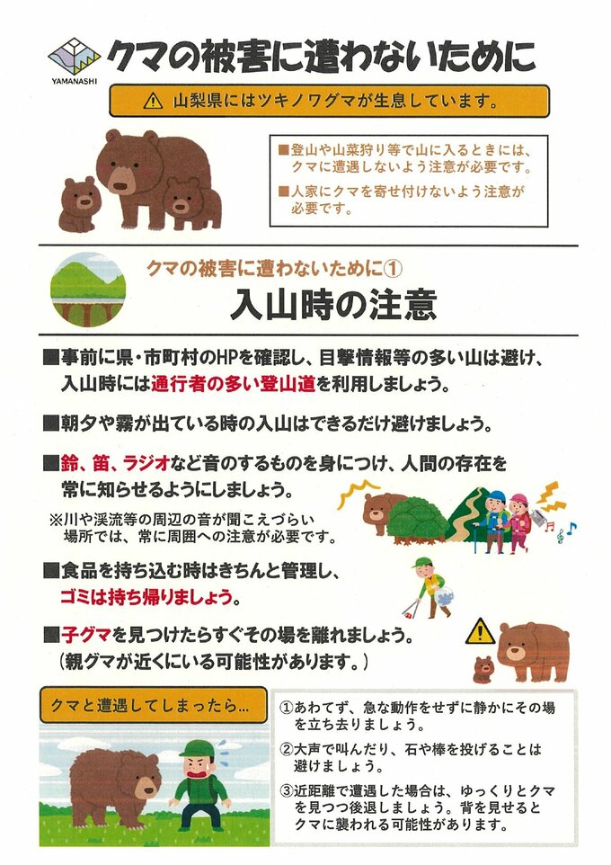 クマに襲われ1人が負傷 県内で今年初の人身被害 県が注意喚起 山梨