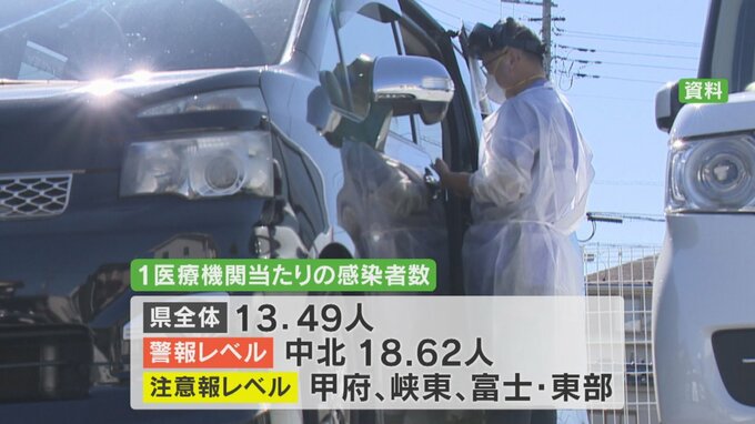 1医療機関あたりの感染者数は県全体が13.49人でした。