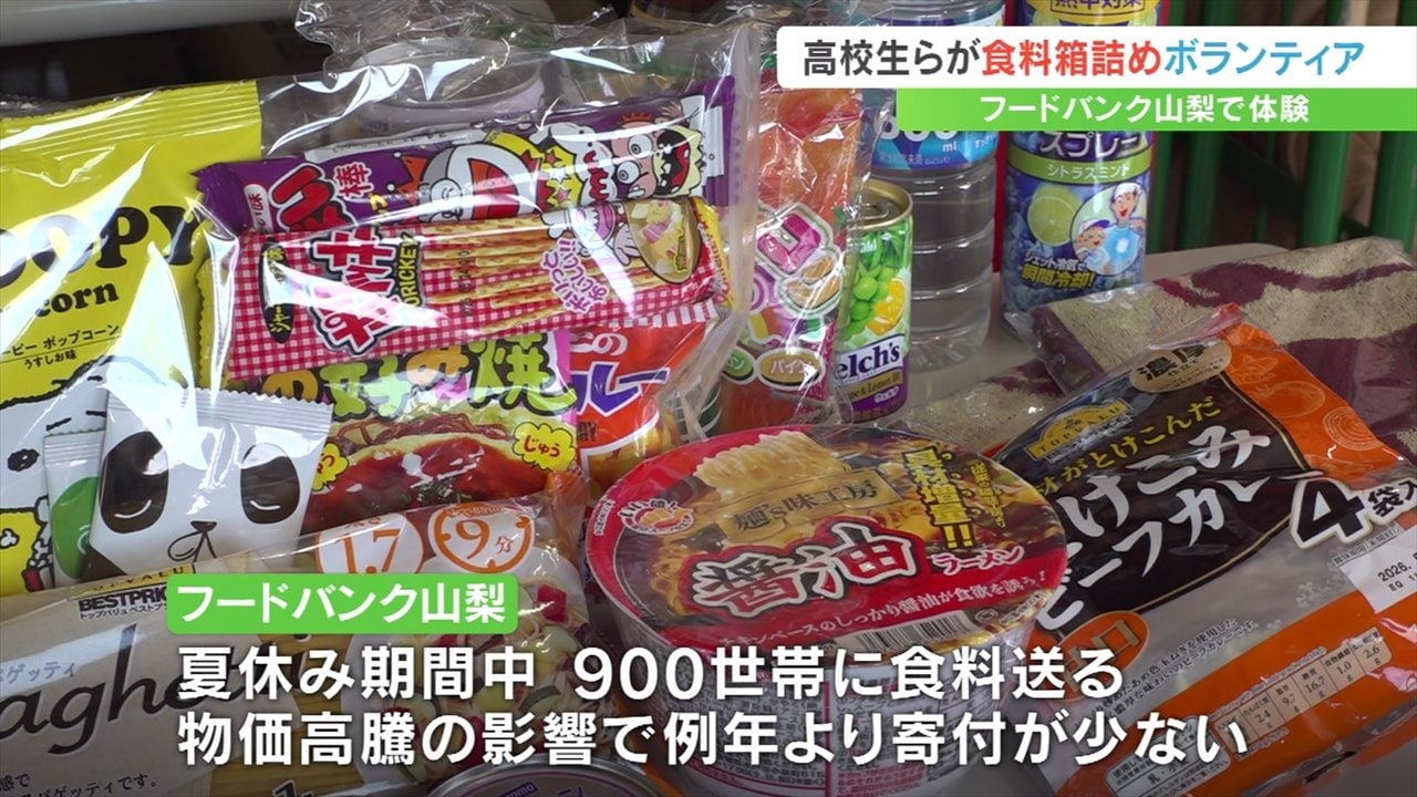 給食がない夏休みに、経済状況が厳しい家庭に食料を送るボランティア活動に山梨県内の高校生らが参加しました。