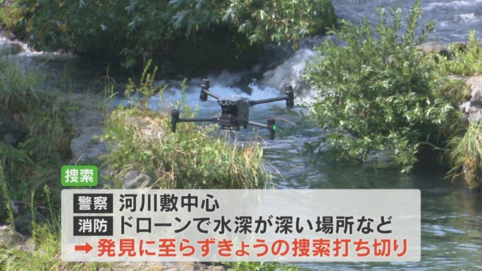 警察は男性が釣りをしていた場所から約2.5㎞下流までの河川敷を中心に、さらに消防はドローンで水深が深い場所などを捜索しましたが見つかっていません。