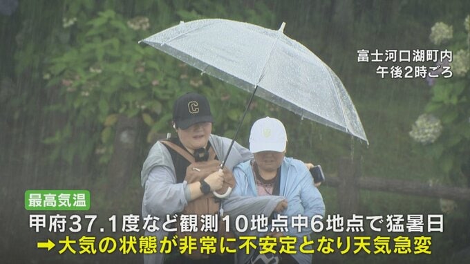 5日の県内は、甲府で最高気温が37.1度など、観測10地点中6地点で35度以上の猛暑日を観測した一方、大気の状態が非常に不安定になり、昼頃から天気が急変しました。