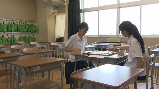 教室で黙々と囲碁を打つのは甲府南高校のクイズ研究会の生徒です。