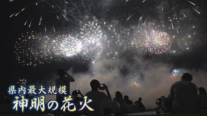 7日夜、山梨県市川三郷町で開かれた県内最大規模の花火大会「神明の花火」。