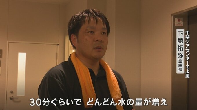 甲斐市大下条にある福祉施設では1階の半分程度が最大で10cmほど床上浸水したといいます。
