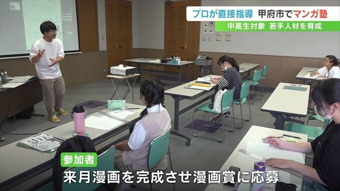 山梨県内の中学生と高校生にプロが直接指導するマンガ塾が甲府市で開かれています。