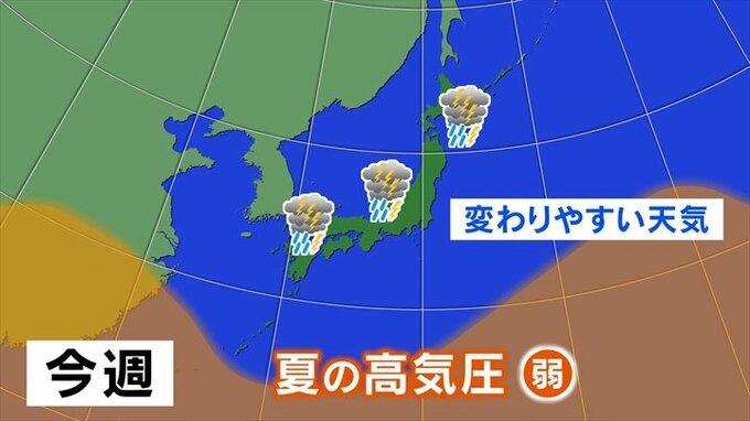 これはなぜかというと、太平洋高気圧に覆われていなくてその分、暖かく湿った空気が流れ込みやすい環境が続いているんです。