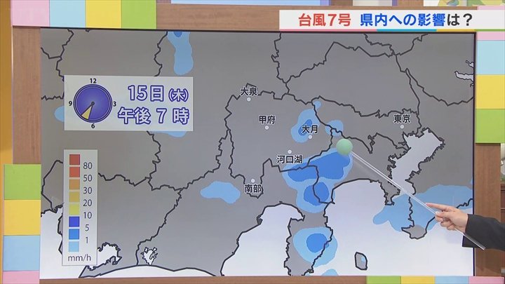 現時点ではこの予報円がちょうどこの一番西側を通ると千葉県付近をかすめるということで山梨に直撃するわけではないんですが、まだまだ大雨のおそれがありまして、ピークとなりそうなのがこの16日の金曜日となりそうなんです。