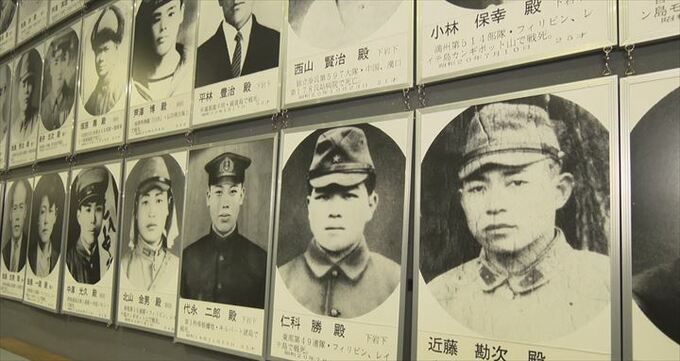 会場には軍服や水筒、それに寄せ書きがされた日章旗などが展示され、戦時中を生き、戦地に散った人々の思いを静かに語りかけます。