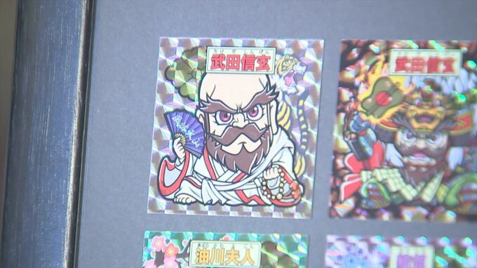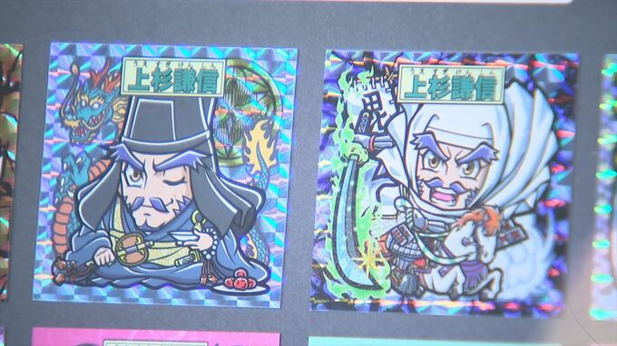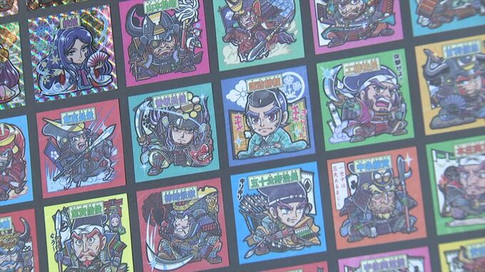 3年前に販売を始めた武田信玄と武田二十四将のシールが好評だったことから、甲府商工会議所などが企画し、今回「川中島の合戦」をテーマに36種類を完成させました。