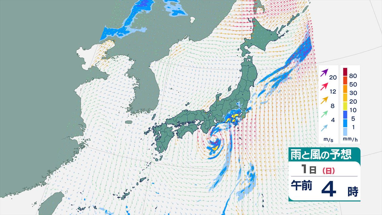 関東甲信地方 31日夜から1日午前中にかけ線状降水帯の可能性